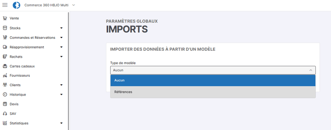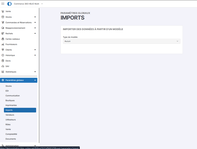 Accéder à la rubrique Paramètres globaux > Imports :