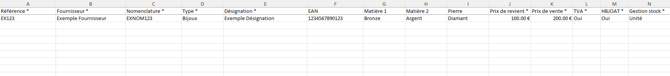 Il faut maintenant compléter le modèle, pour ensuite le renvoyer sur Commerce 360 et ainsi, permettre d'importer les références.