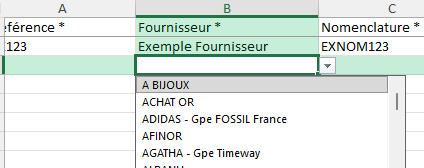 Astuce : il est possible de copier/coller des cellules qui disposent déjà d'une valeur sélectionnée depuis excel. Cela permet d'éviter de sélectionner une valeur depuis chaque cellules du fichier.