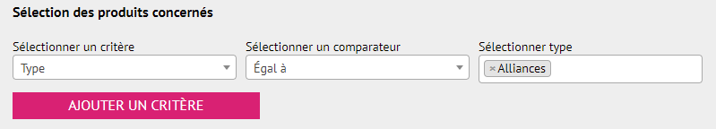 Précisez ensuite que les produits concernés sont les produits de type "Alliances".