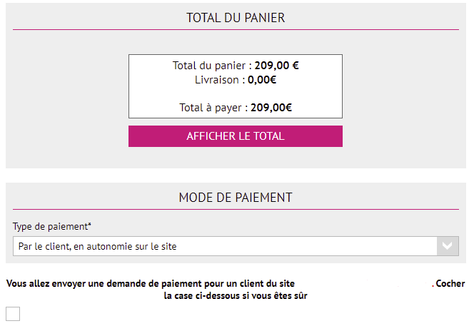 En cliquant sur le bouton « Afficher le total », vous pouvez vérifier le montant qui devra être réglé par votre client(e).