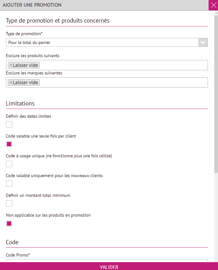 Pour terminer, cliquez sur « Valider » et le code promotionnel sera prêt.