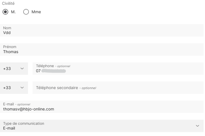- renseigner un type de communication client (par sms ou e-mail, dédié aux notifications uniquement)