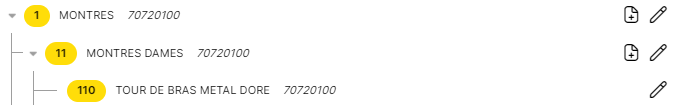À savoir : La nomenclature est un système de classification, permettant de classer les articles du stock d'une bijouterie dans des groupes, familles et sous-familles, ainsi que de définir le mode de gestion des articles correspondants (par unité ou quantité). Chaque niveau est rattaché à un N° de compte comptable de vente, qui permet une gestion simplifiée de la comptabilité. Il est donc important d'avoir une nomenclature correctement paramétrée.