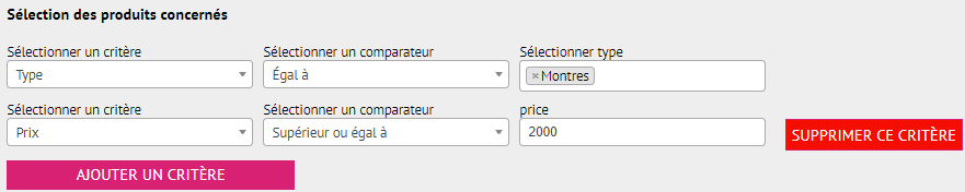 Votre offre ne concerne que les montres d'une valeur supérieure ou égale à 2 000€, dans ce cas sélectionnez le critère "Nombre de produits entrant dans la sélection".