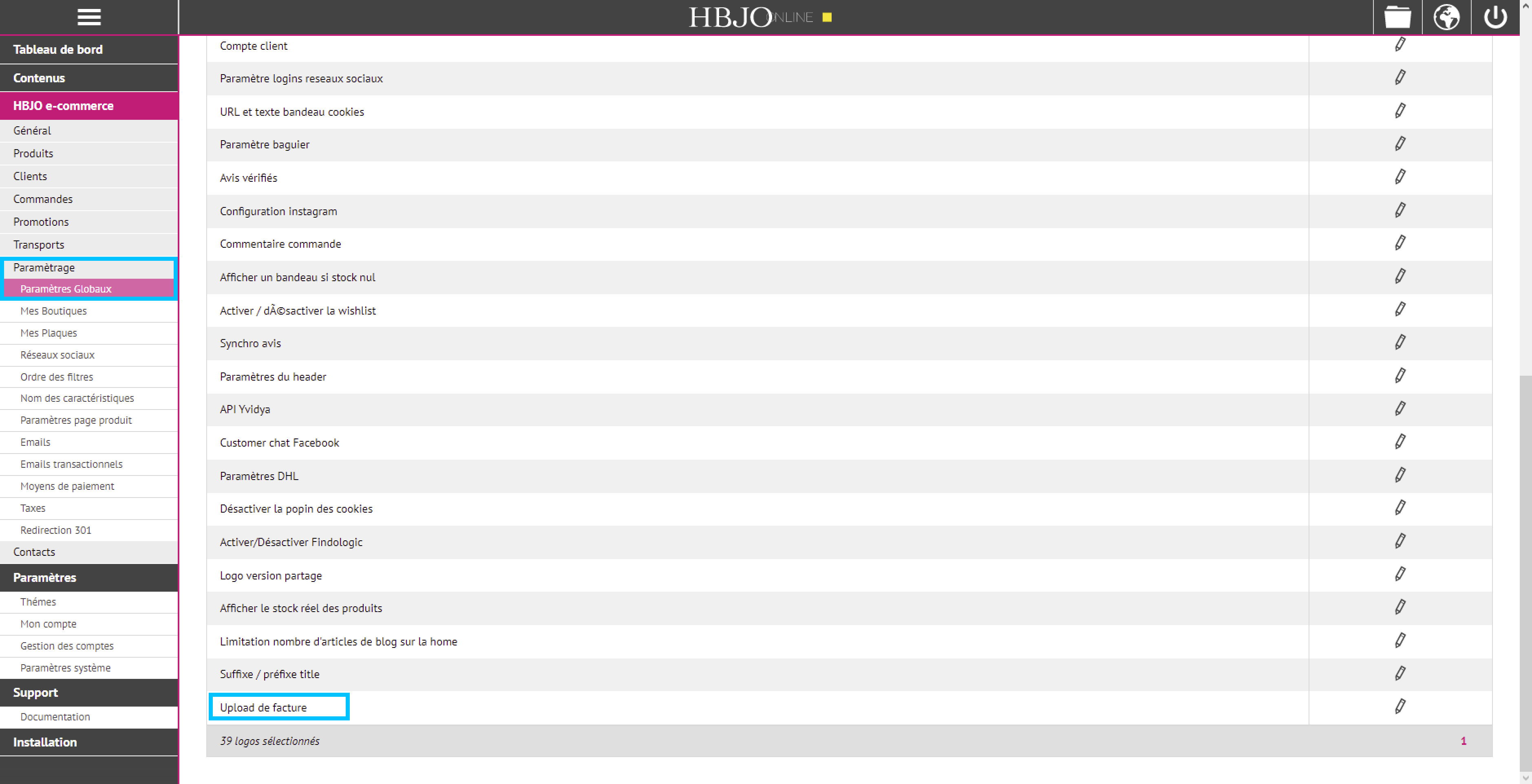 Commencez par aller dans "Paramètres" puis "Paramètres Globaux", de là, trouvez la ligne "Upload de facture" et cliquez sur le stylo à droite. Cocher la case « Activer l'upload des factures dans ADN » :
